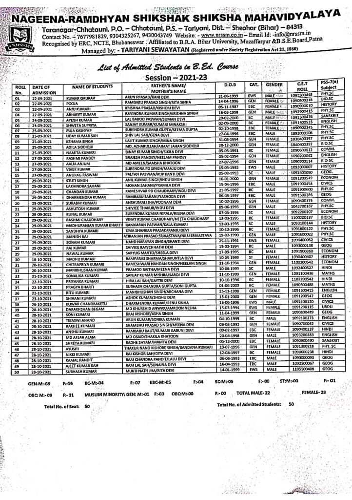 B.Ed Students Admission list B.Ed Admisssion Students List 2020-21 B.Ed Admisssion Students List 2021-22 B.Ed Admisssion Students List 2022-23